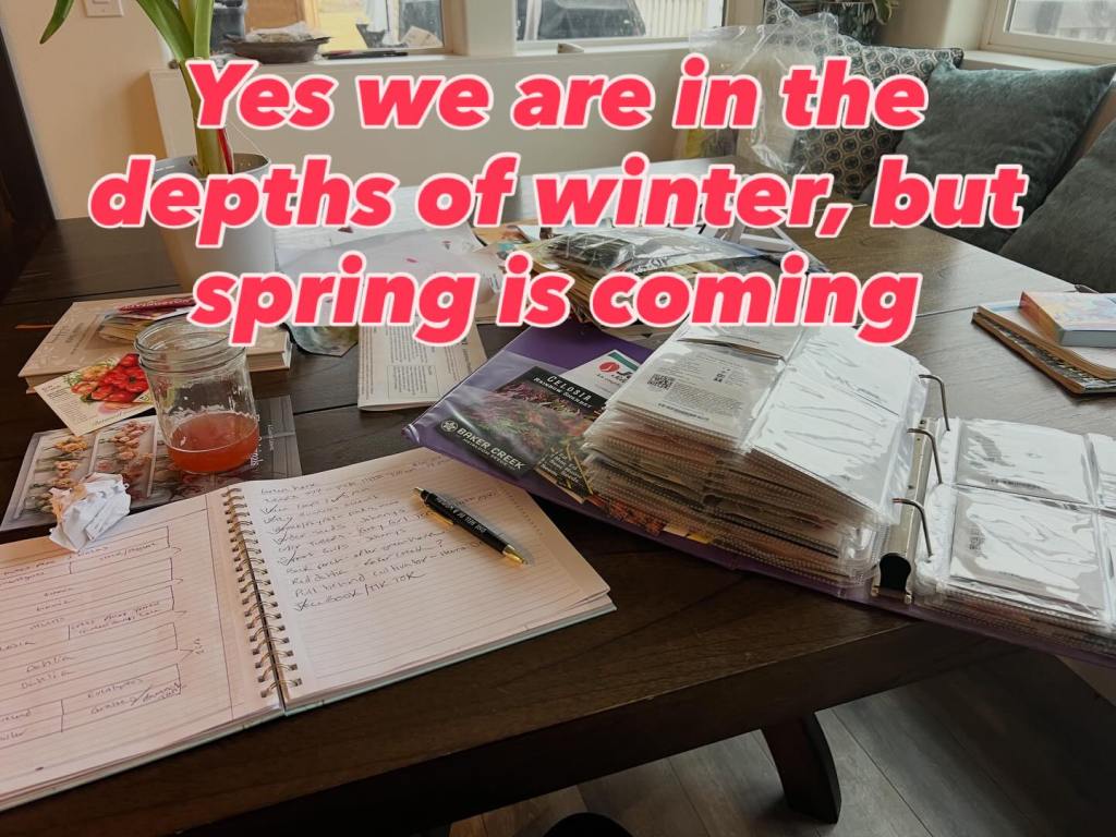 My notebook and seed binder are essential gear for this phase of the garden. Every little thing from “plant inside” or “plant outside” to a timeline to a diagram to a watering schedule goes into this notebook.